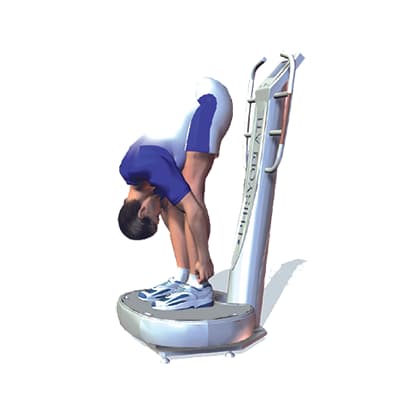 Ausgangsposition: Stelle dich auf die vibrierende Plattform, deine Beine leicht nach vorne gebeugt.
