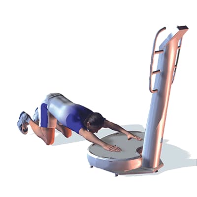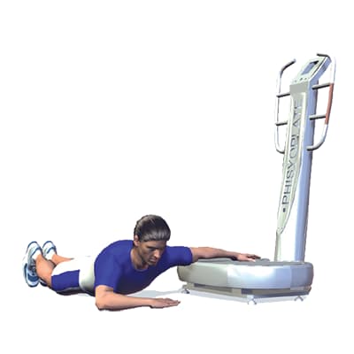 Ausgangsposition: Lege dich vor dem Vibrations-Trainer auf den Bauch, die Beine geschlossen, eine Hand auf der Plattform.