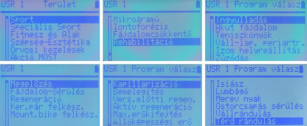 Die SPORT-Programme der Geräte können bei muskulären Verletzungen, Erkrankungen, Kraft- und Muskelmassenverlust etc. verwendet werden. Sie sind nicht nur für Patienten, sondern auch für Sportler geeignet. Die Parameter der einzelnen Muskelprogramme unterscheiden sich, sodass verschiedene Programme die Muskel-Durchblutung verbessern (Kapillarisierung), steife Muskeln entspannen, die Grundkraft oder die Maximalkraft erhöhen oder die Muskelmasse vergrößern.