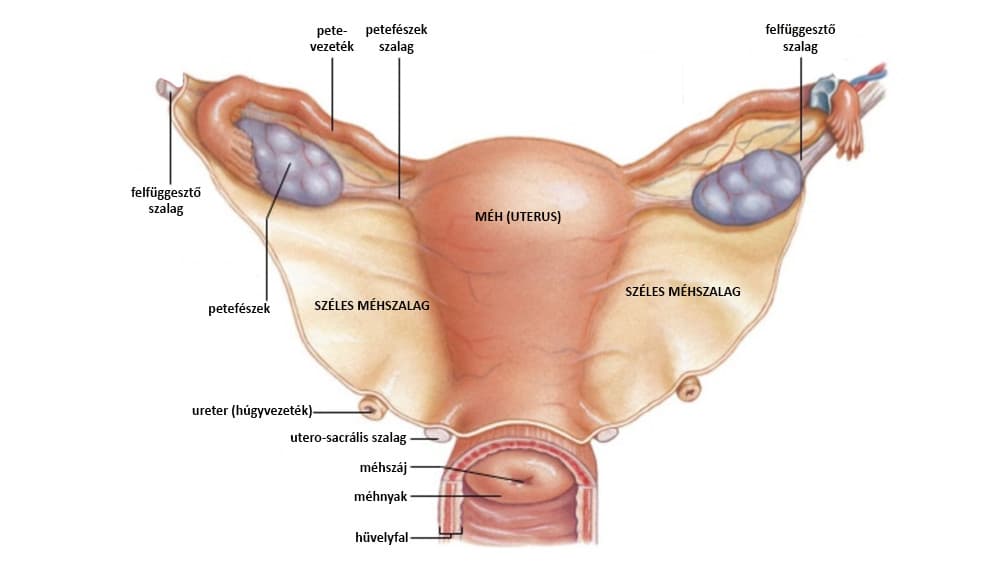 Die Blase und die Gebärmutter werden von oben durch das Peritoneum überzogen und gleichzeitig in der kleinen Beckenhöhle fixiert. Zusätzlich ist die Gebärmutter durch Bänder am Becken bzw. am Kreuzbein verankert. Stell es dir vor wie einen Kronleuchter, der mit Draht oder Band an der Decke befestigt ist.