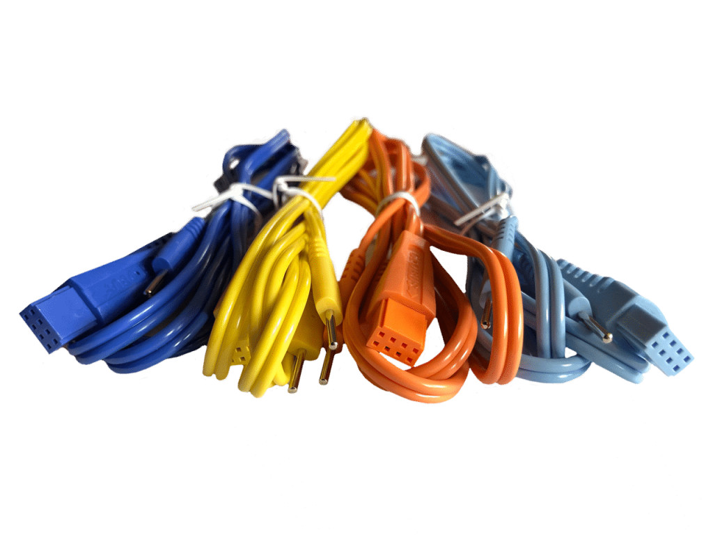 Patientenkabelsatz für Globus 4-Kanal-Elektrotherapiegeräte. Bei neuen Geräten ist keine separate Bestellung nötig, da er bereits mitgeliefert wird.