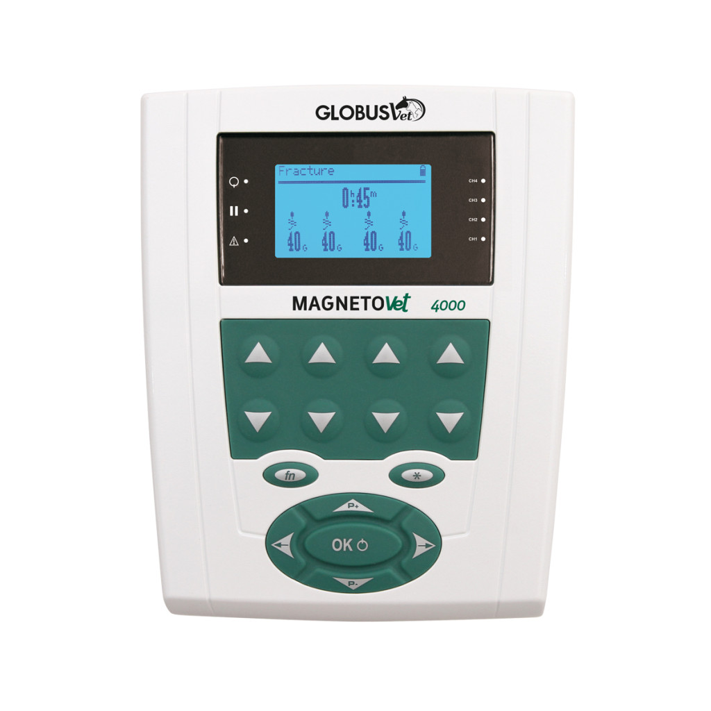 Das MagnetoVet 4000 ist das High-End-lymphdrainage gerät von Globus, ideal für Tierarztpraxen, Tierkliniken, Pferdesportställe und anspruchsvolle Tierhalter. Es kann gleichzeitig bis zu zwei Tiere mit bis zu 4 Kanälen und 63 voreingestellten Programmen behandeln.