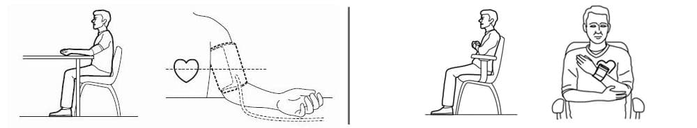 - Messung am Handgelenk: (rechte Abbildungen)